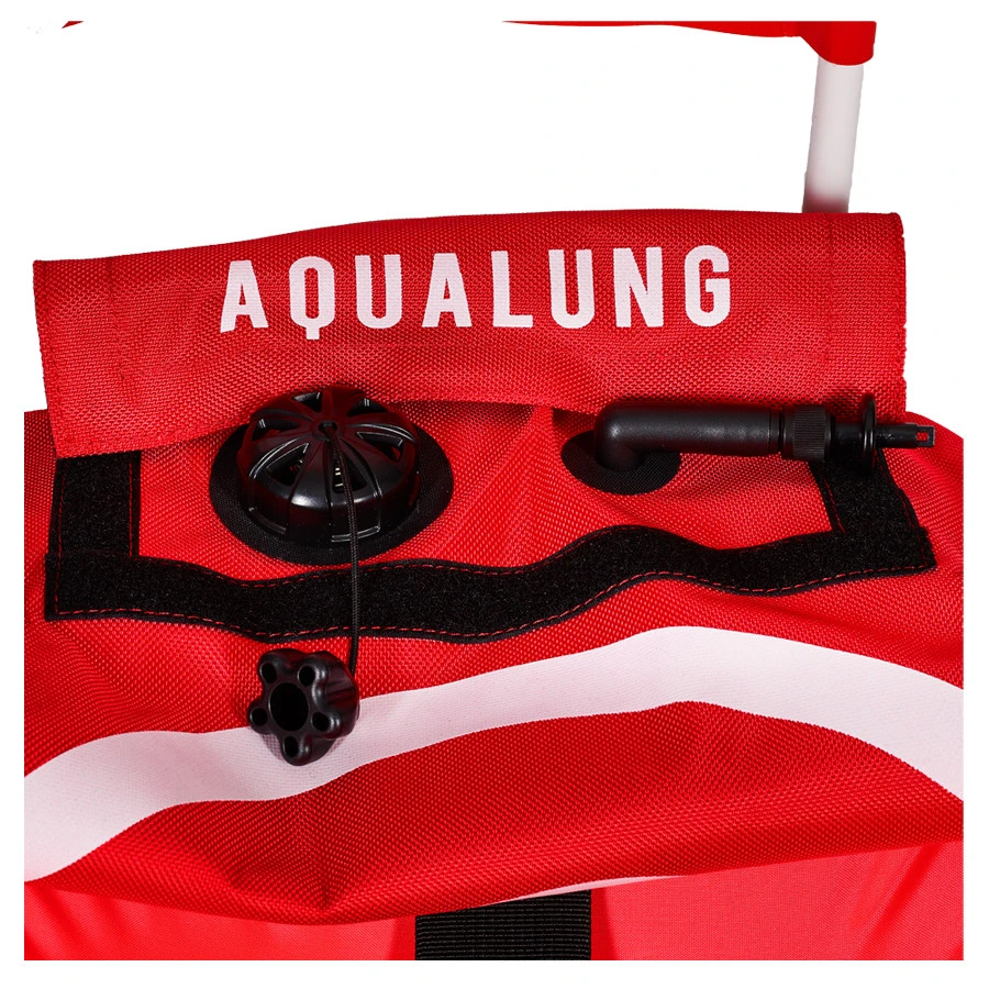 Elle est faite d’un matériau extérieur très résistant et possède plusieurs poignées et anneaux en D pour préparer la plongée.Le grand espace interne permet de ranger la drisse pendant le transport. Le dispositif de gonflage peut être oral ou assisté par pompe. L’adaptateur n’est pas fourni.