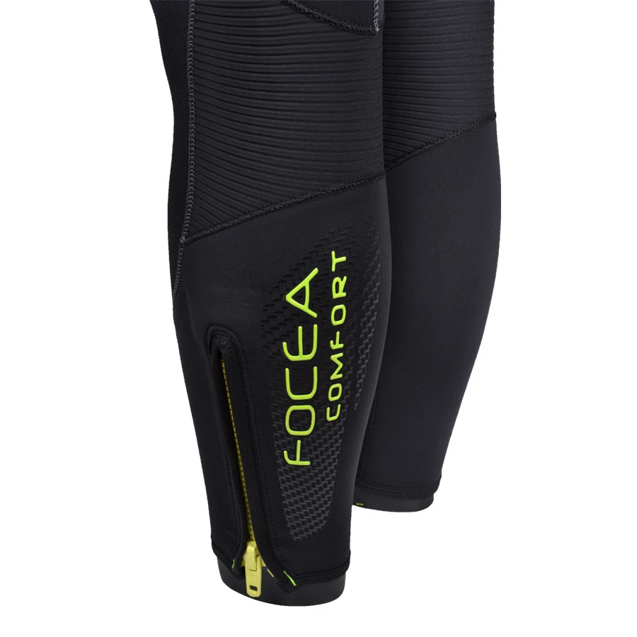 Zip poignet et cheville Renforcement du néoprène à l’extrémité de tous les Zips pour éviter tout risque de déchirure si le plongeur force en tirant sur les curseurs.