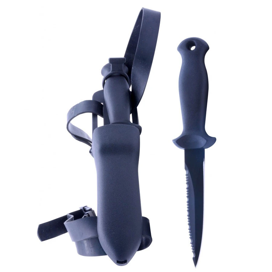 Couteau de chasse sous-marine, lame de 11 cm acier inoxydable traité téflon, fixation cheville support rigide.