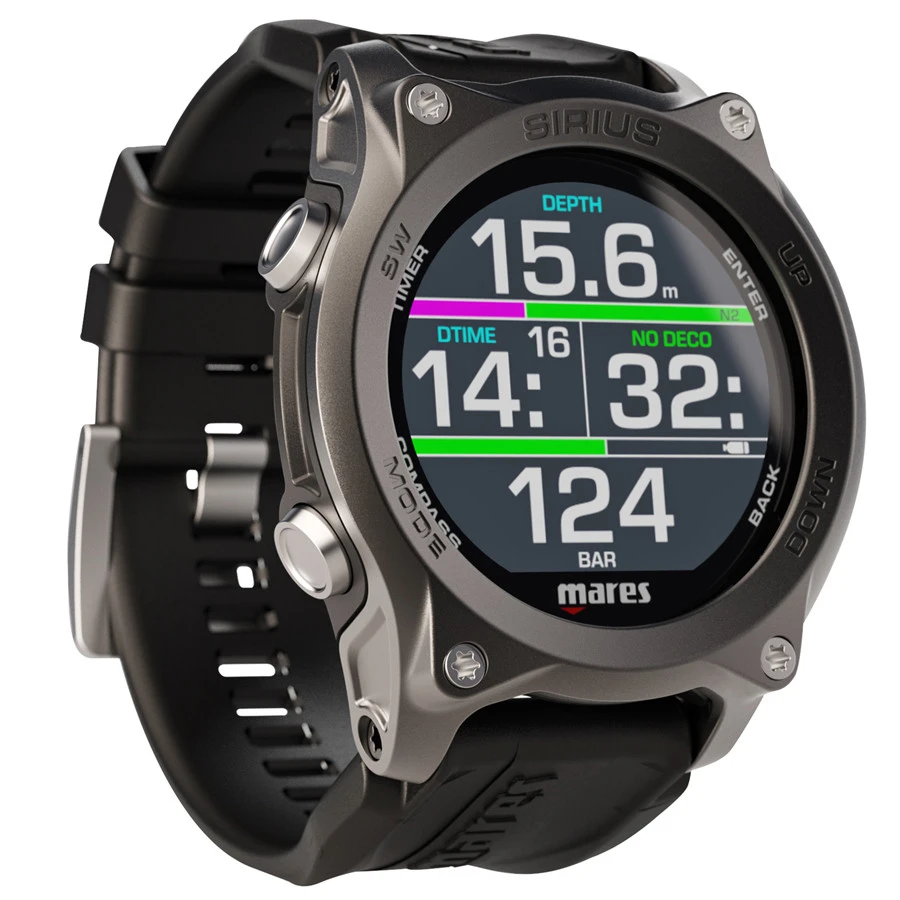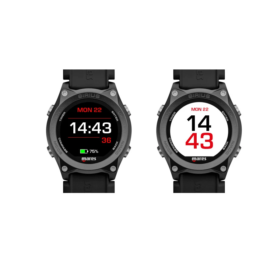 Le Sirius est un ordinateur de plongĂ©e au format montre qui allie parfaitement technologie et Ă©lĂ©gance. Les caractĂ©ristiques de cet ordinateur de plongĂ©e prĂ©sentent une technologie haut de gamme Ă la fois pour le plongeur loisir que pour le plongeur technique. Le plongeur loisir peut voir les donnĂ©es de plongĂ©e de maniĂšre simple et intuitive, avec la possibilitĂ© d’intĂ©grer les donnĂ©es de la bouteille grace Ă un Ă©metteur en option. Le plongeur technique peut insĂ©rer jusqu’Ă cinq mĂ©langes nitrox et trimix. GrĂące au bracelet interchangeable, il peut ĂȘtre utilisĂ© avec n’importe quelle Ă©paisseur de combinaison.